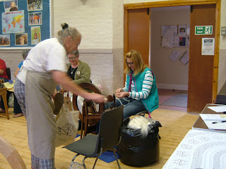 Dyeing for Art Yarn and Beginners Long draw was very popular – here are just a few of the ladies who tried space dyeing for the first time on Tuesday. It looks like an advert for Ashfords – the traditional is the wheel of choice for a lot of beginners – we have six available on loan to beginners – only one of which is pictured here!
