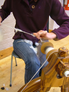 at the last SpinningSchool we spun silk, alpaca, cashmere and these angora locks. When you can spin long draw you can spin anything. Obviously this slim spinner is not me! Tomorrow we hope to spin on several different wheels..