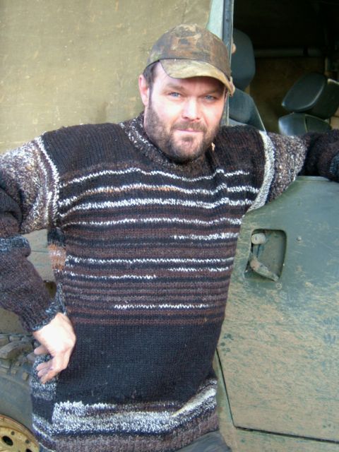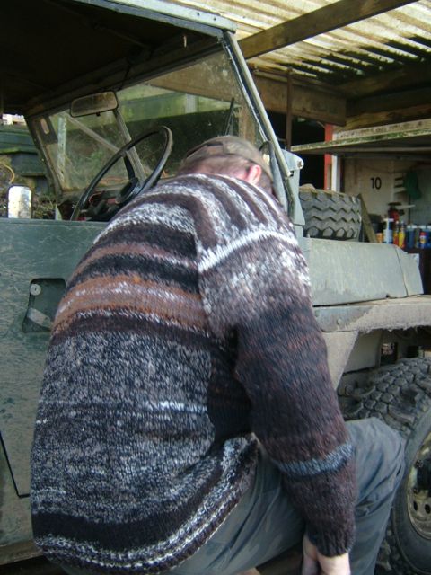 is finished and it fits! It is called the oil slick pullover as my friend always seems to have his head under the bonnet of one vehicle or another and an oil-slick won’t show.