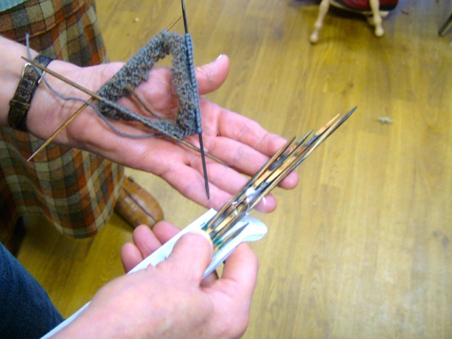 Ros showing off her new Cubic Knitpro dpns