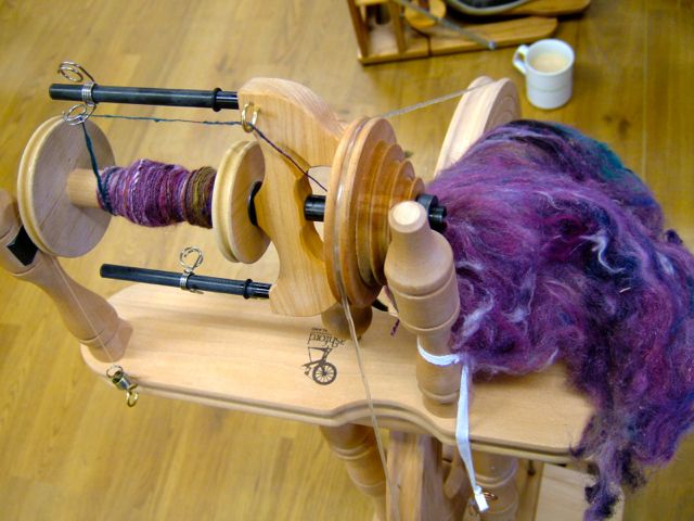 Julia was spinning a lovely art yarn at Woolly Day last Saturday – the colours are set off agains her new Ashford wheelDSCF3933