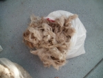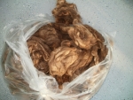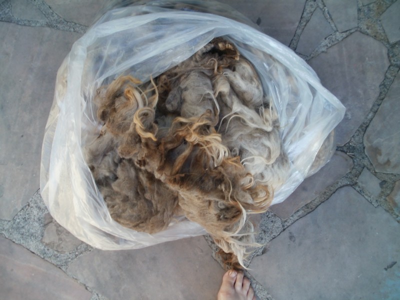 Churro fleeced washed and ready to go. Gillian has been busy – the fleece is all washed, dried and ready to be collected by Judith (who is on holiday is  Arizona) on Thursday this week. It is going to be vacuum packed for the flight: ‘I have thoroughly washed and rinsed the light red fleece, it does look good, sort of a blend of cream, red and light brown. I think you’ll LOVE it. First pic is on the drying rack outside. A fair amount of red brown dirt came out, not a lot of grease, at least compared to UK fleece. Maybe it is because it’s dry here and they don’t need the waterproofing. Pulled out a few burrs but little sheep shit. The basic colours really stand out now after the wash.
