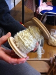 Spinning Wensleydale and keeping the natural curly locks is not difficult, Mandy had been spinning for just one week when she produced this at my last workshop. By popular request the Wensleydale workshop is to be repeated on 6th May at Knuston Hall – see events.