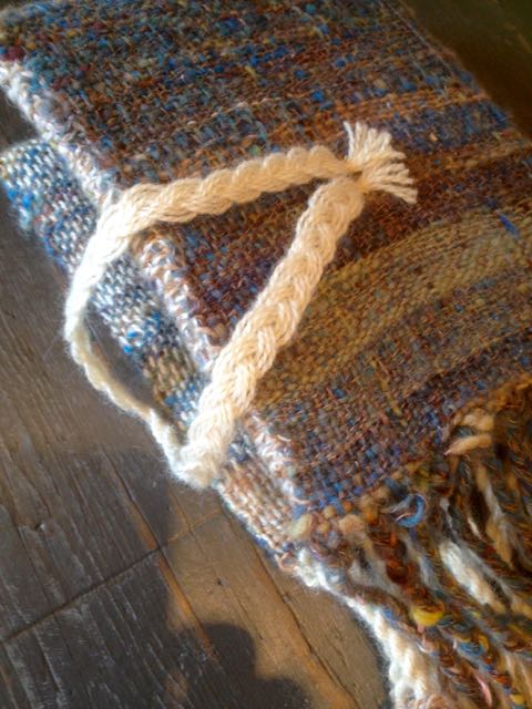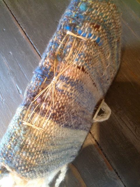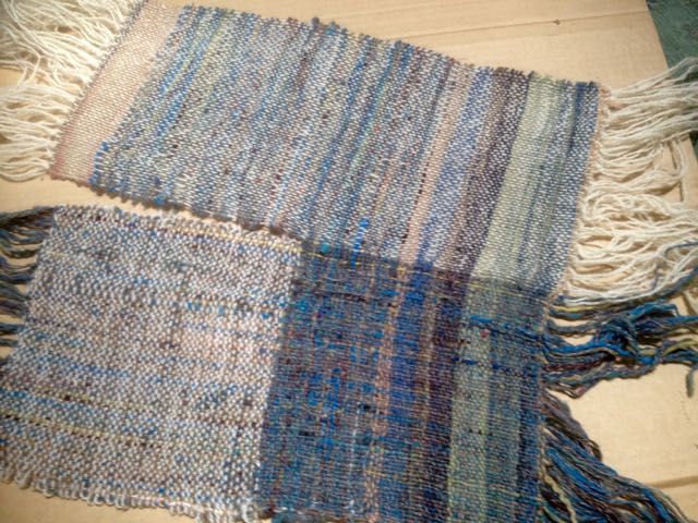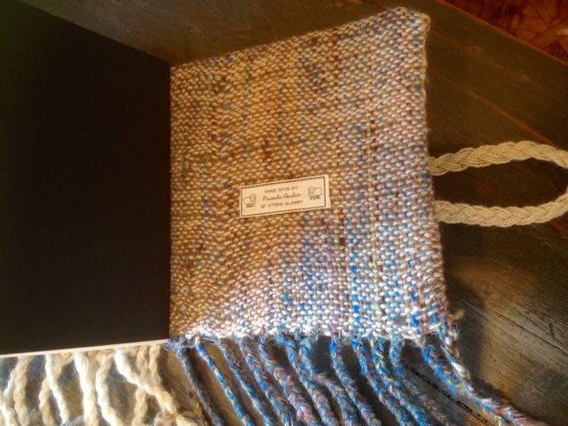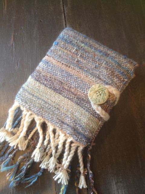 This is a great way to use up Art Yarn as it didn’t take much and shows up the colours in the plaited blue warp threads very well. I had intended the warp and weft section that was in Water Yarn to be the front cover but it ended up on the back…oh well!